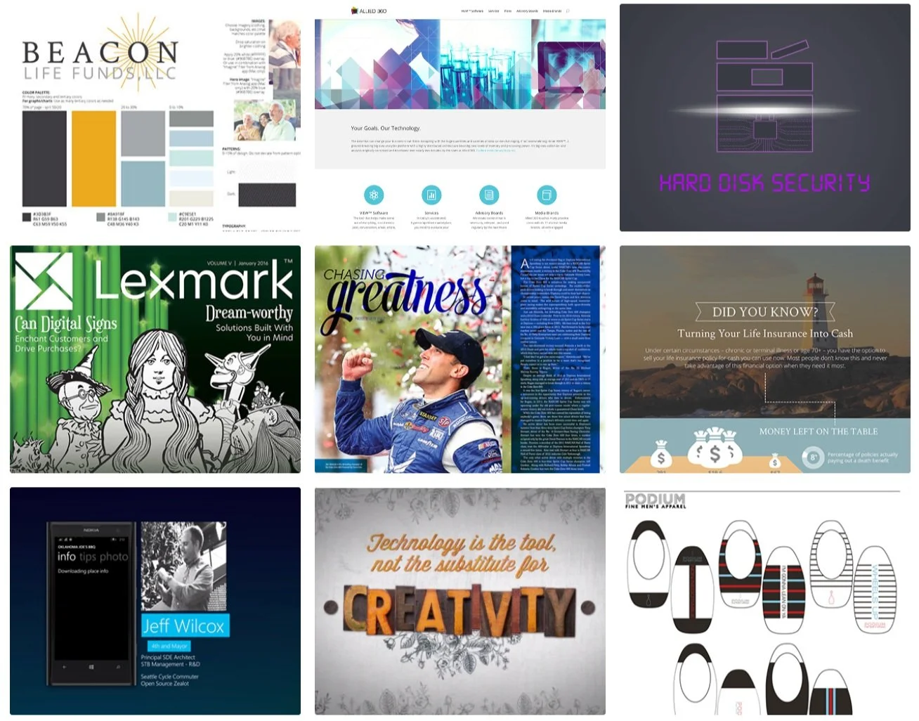 This collection highlights Sarah’s foundational years at Lexmark and Anthem Media Group, showcasing her versatility across logo design, animation, and print media. The portfolio, hosted on Behance, features a diverse range of projects that demonstrate her creativity and technical expertise, including branding solutions, dynamic animations, and impactful print designs that laid the groundwork for her career in creative leadership.